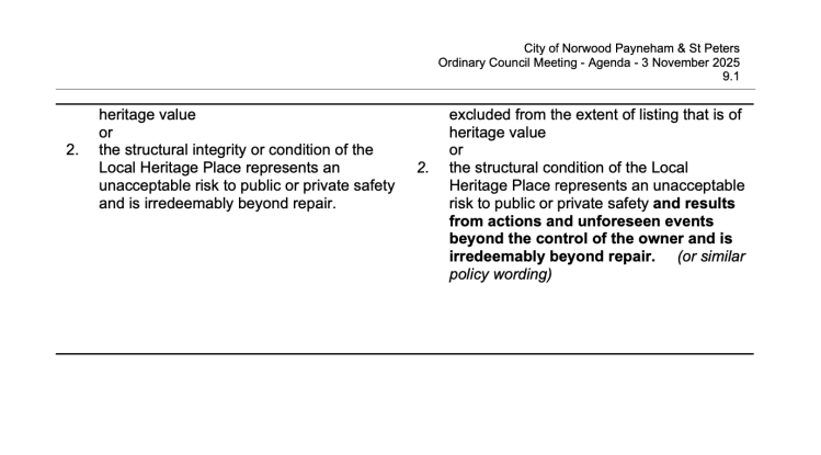 At the November meeting of Council, I asked for an update on the implementation of the Expert Panel’s recommendation, that would allow assessment panels to consider this behaviour when considering demolition applications.